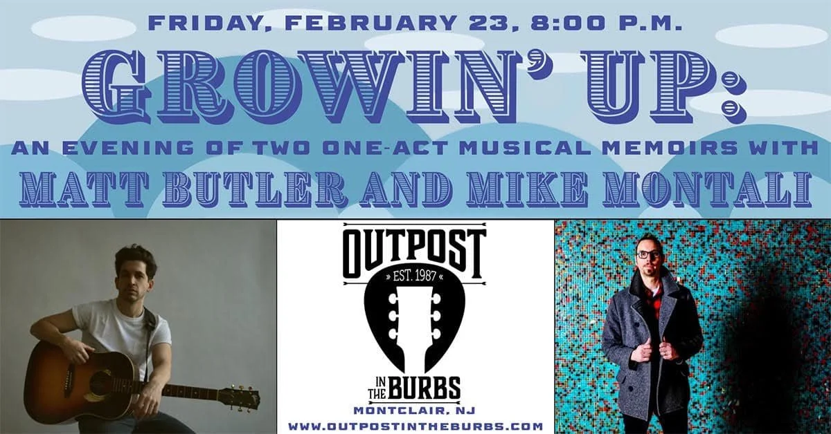Billed as “Growin’ Up: An Evening of Two One-Act Musical Memoirs,” Outpost In The Burbs, in Montclair, on February 23, will host Matt Butler and Mike Montali. Butler’s been taking his act to prisons of late, performing at Riker’s Island and San Quentin, just two of 150 jails he’s visited. His “collection of music, monologues, personal history, and lessons learned from those behind bars,” is his calling-card, as he says, adding, “I didn’t write the show for the incarcerated, but for those who haven’t had the privilege of meeting these people and hearing their stories for themselves.”